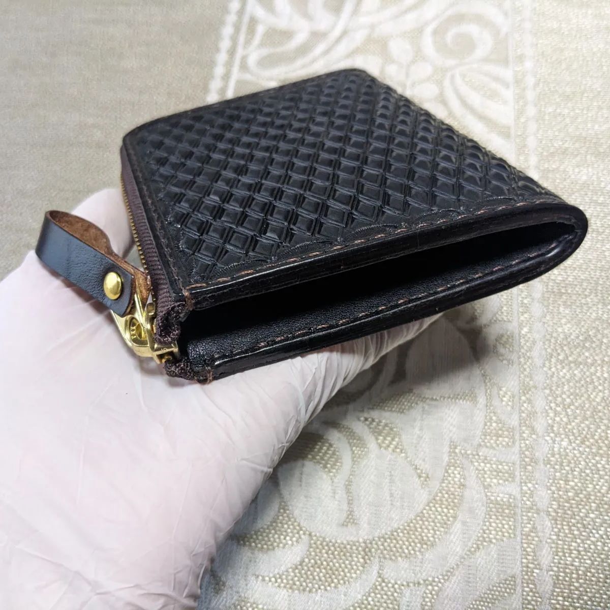 L字財布 ④ ダイヤ刻印 黒 本革 ハンドメイド