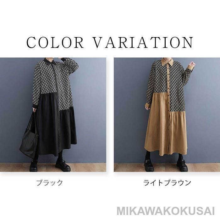 ワンピース シャツワンピース レディース ロングシャツ ロング シャツ ワンピ プリント アシンメトリー 長袖 綿 コットン 体型カバー
