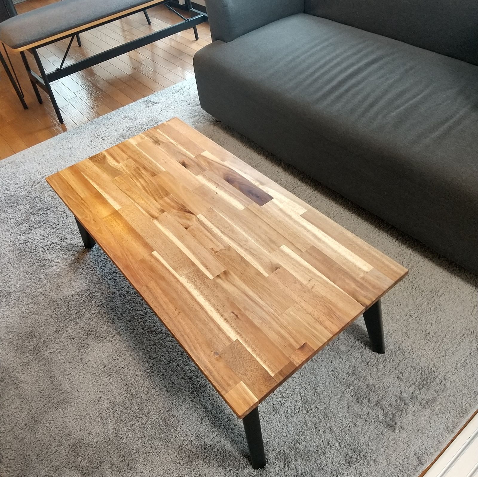 アカシア無垢集成材の折りたたみできるローテーブルです。