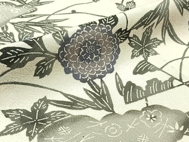 平和屋着物 上質な小紋 単衣 型染め 草花文 正絹 jh