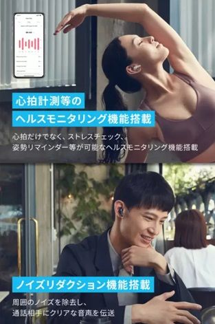 心拍モニタリング、ストレスチェック、姿勢リマインダー、ワークアウト機能等が利用可能。Soundcoreアプリを通じて各データを確認いただくことで、日々の活動をサポートします。