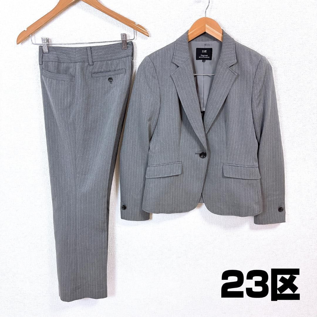 23区 パンツスーツセットアップ ワンボタン 38 ストライプ
