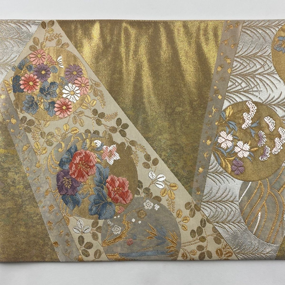 袋帯 秀品 琳派裂取文 金糸 箔 金色 六通 正絹