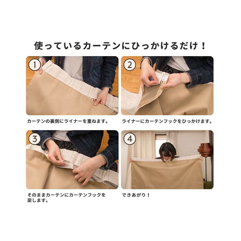 防音ライナーは、すでにお手持ちのカーテンに取り付けるだけで、簡単に防音できます。