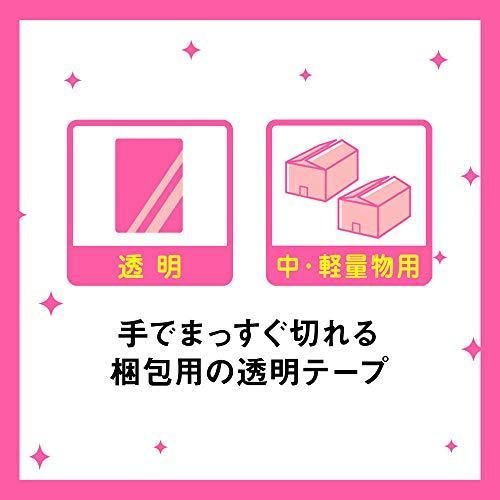 ・透明なのに、手で切れるガムテープ。 ・梱包に便利ではさみやカッターを使わなくても使える。 ・接着力が高く、透明でキレイな仕上がりなので、貼った時の見た目が布テープやクラフトテープよりキレイです。 ・手でまっすぐ切れるから作業スピードがUP。 ・透明で下地の文字やデザインを隠さない。