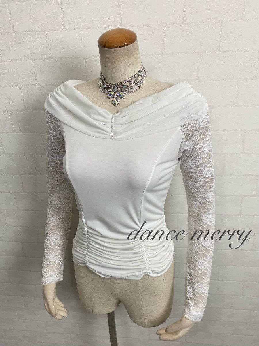 Mサイズ MERRY 社交ダンス レース 長袖 白 トップス ワルツ パーティ 2993