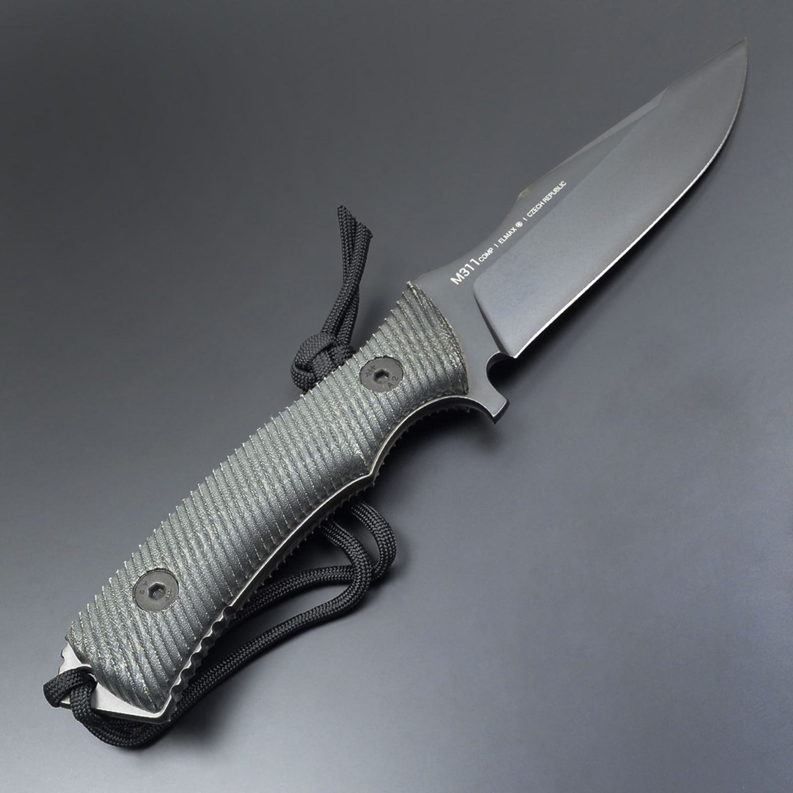 ハンドルは3D加工によって形成されたマイカルタ製で、計算された形状と溝加工により手になじみやすく、あらゆる状況でしっかりと握ることが可能です。安全性を考慮し、手から滑り落ちることを防ぐパラコードループが付属しています。