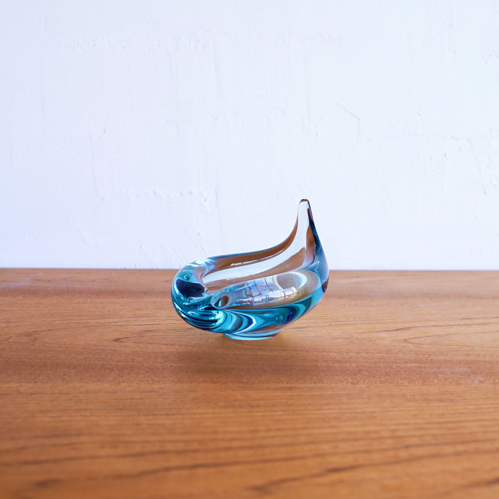 1950〜60年代にかけて制作されたデンマークHolmegaard(ホルムガード)社製のアシュトレイです。同社のデザイナーPer Lutken(ペア・ルトケン)が手がけた澄んだブルーガラスが魅力的な逸品です。