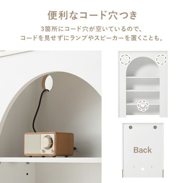 説明置くだけでお部屋がおしゃれになる、大人可愛いマントルピース型の収納ラック。コード穴があるのでライトやスピーカーも使用できます。
