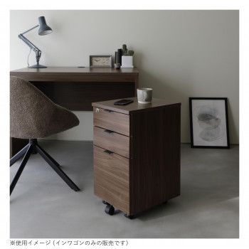 熱や傷に強いメラニン天板です。3段目の引出は深めの設定で、A4サイズのファイルも収納できます。鍵付きの引出で、鍵をかけるとすべての引出がロックされます。