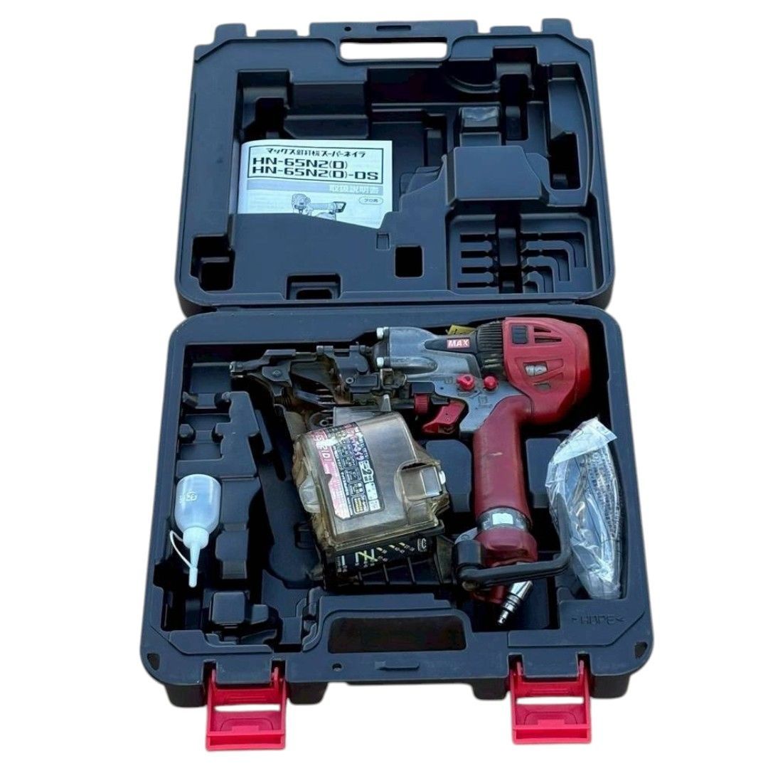 こちらは MAX スーパーネイラ HN-65N2-D 高圧釘打機 になります。65mm釘まで対応し、強力な高圧パワーと優れた連続打ち性能で、建築現場でも高い信頼を誇る人気モデルです。