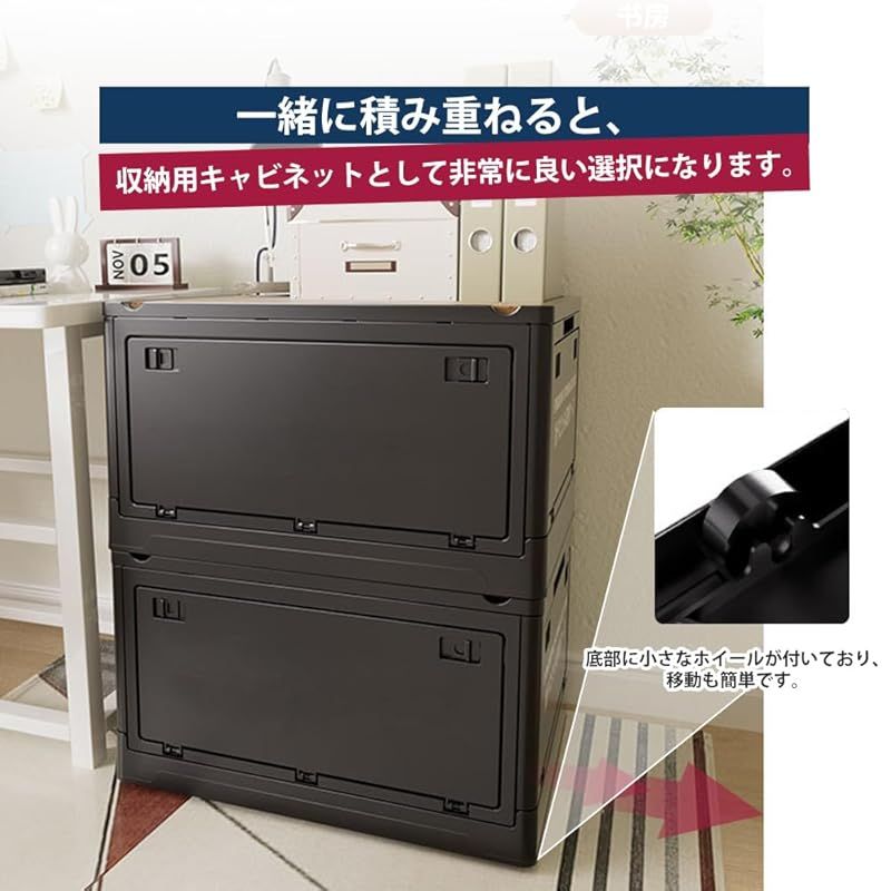 【全方向から取り出せる】収納箱界の大革新!使わない時に折りたたんで収納できます、スペースを取りません。側面四面も扉付き、収納にとても便利です。上にふた付き、物を入れやすい、蓋をロックできます。物を取るは側面扉から、ボックスを積み重ねる状態にも楽に物を取り出して、伝統的な収納ボックスに比べてもっと便利で、機能性が向上します。