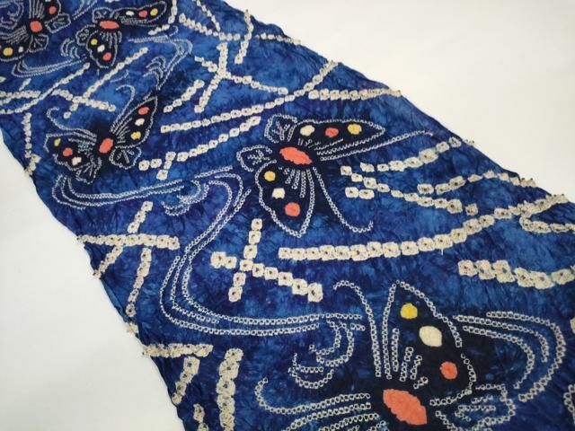 上 夏物 浴衣 有松鳴海絞り 反物 着尺 湯のし前 流水に蝶 綿 kh 5