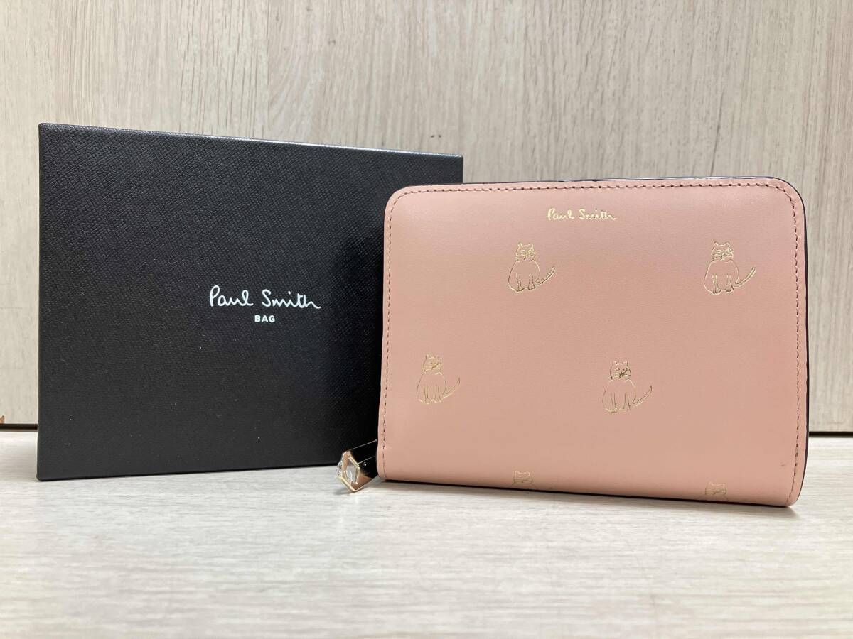 Paul Smith ポールスミス 二つ折り財布 牛革 2つ折り財布 BPW 005 ピンク 猫柄