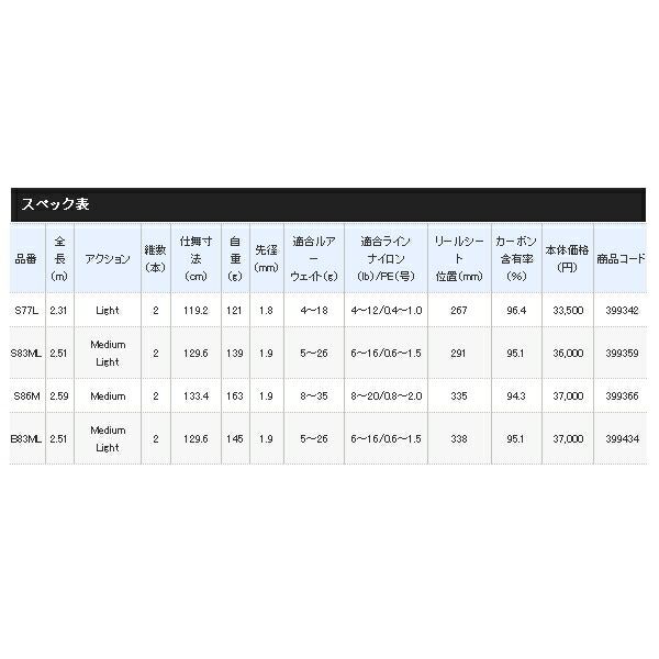 ディープダイバー、スプーン、ヘビーシンキングミノー等の幅広いルアーに対応します。河川の強い流れの中をダウンクロスでルアーを送りこむような場合においても、ルアーをしっかりと操作することができます。また、粘りのあるトルクフルなブランクス設計とベイトリールが生み出すパワフルな巻き上げ力により、大型トラウトの強烈な引きにも対応できるパワーを秘めています。前作にはラインナップしなかった83のベイトモデルです。