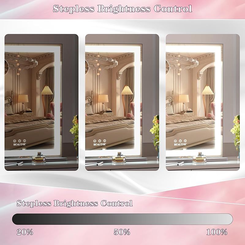 ??【縦型LED化粧鏡】ライトバーイルミネーションバニティミラーは3色のライトモード(クールホワイトライト、ナチュラルライト、ウォームイエローライト)、自然で明るい光、調整可能な光の明るさ、ライト付き完璧な化粧鏡です。