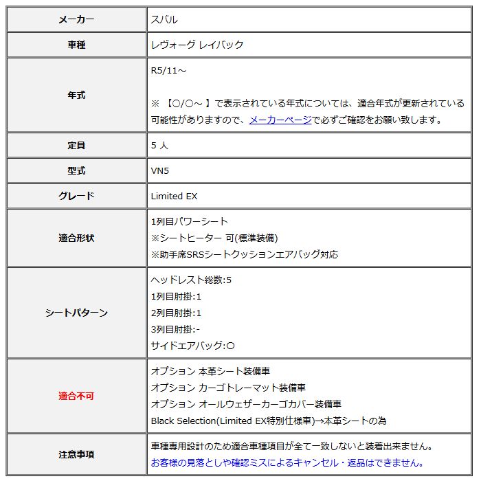 車種:レヴォーグ レイバック