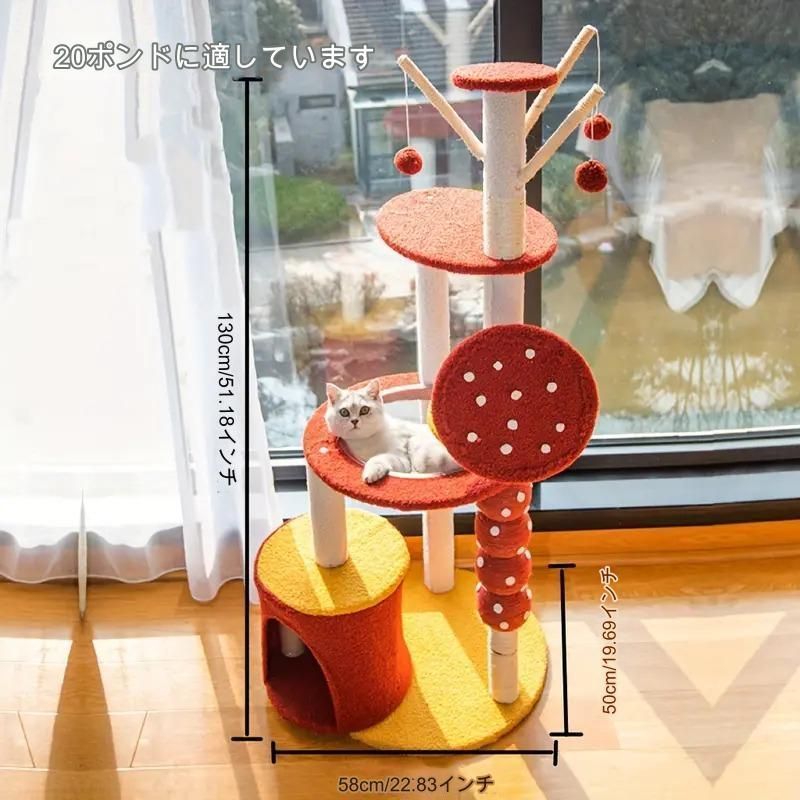 キャットタワー キャットツリー キャットポール キャットクライミング かわいい キャンディー カプセル 据え置き ビッグキャットツリー 高さ130 cm 大型猫 ジュニア猫 子猫向け 猫じゃらし付き トンネル 組立簡単 安定性抜群