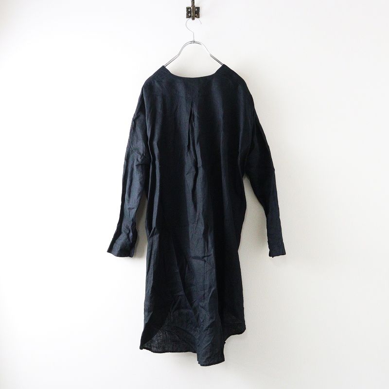 オネット Honnete リネン Vネック ワンピース 5|ブラック トップス 長袖 羽織り 前開き