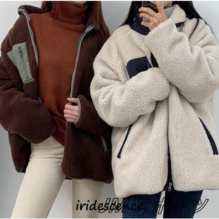 ボアブルゾン ボアジャケット ボアコート レディース 両面着 ジャケット アウター ボア ブルゾン もこもこ おしゃれ 防寒コート 冬 ゆったり 暖かい
