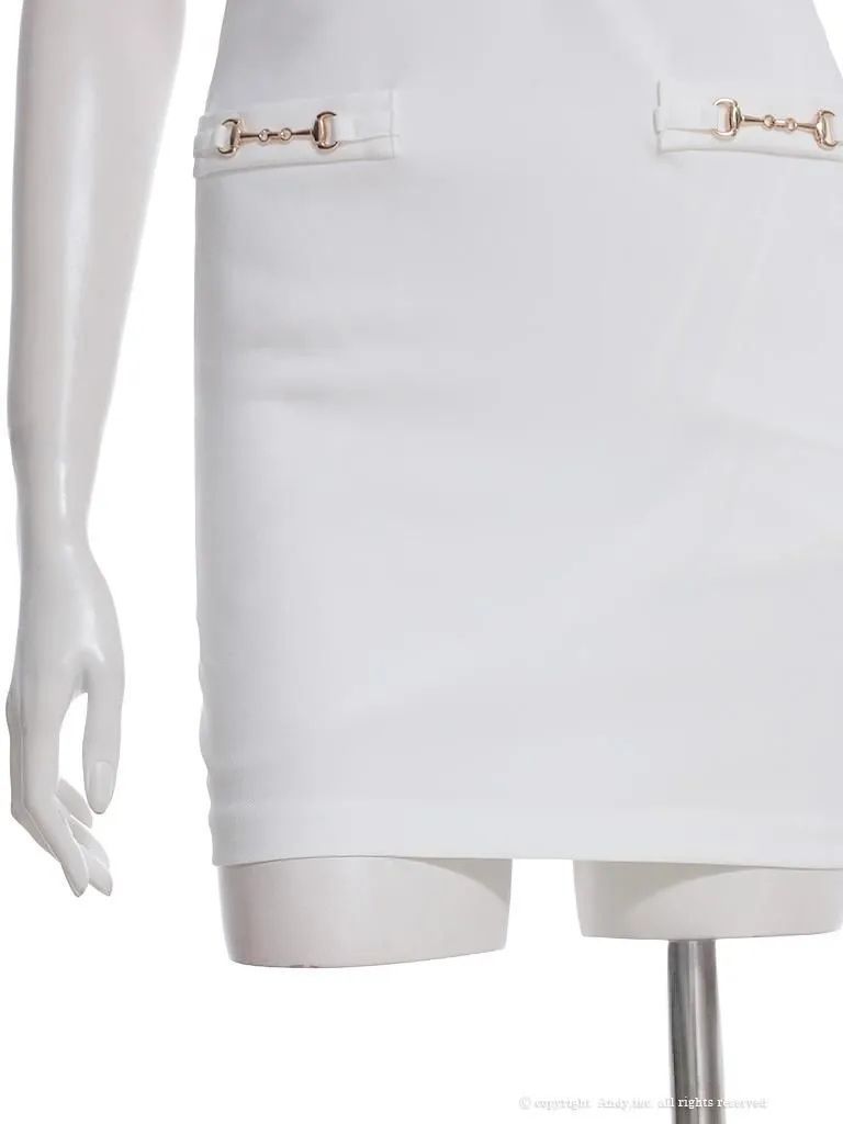 Mホワイト OF 05 AOC 3966-BE-2508 an アン スクエアネック バストジップ ノースリーブ ベルトデザイン タイト ミニドレス キャバドレス