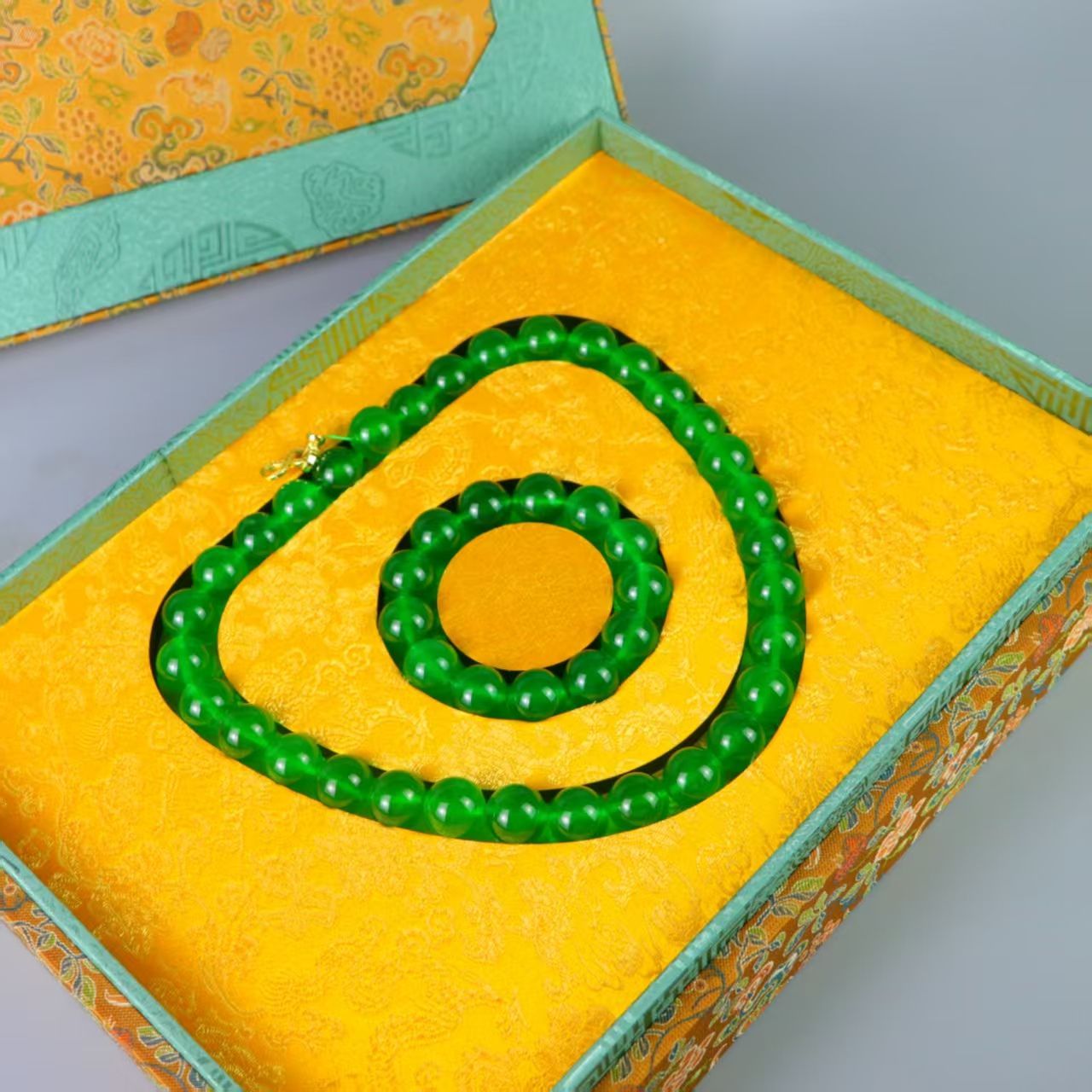 清代 宮廷御蔵 髙氷翡翠彫 帝王緑 腕輪 ネックレス アクセサリ 置物 時代物 旧家蔵岀し 唐物 中国古 R 092612