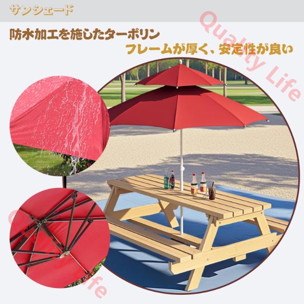 ? 【頑丈な構造】 ガーデンテーブル高級木材で作られたこのピクニックテーブルセットは、細かく磨かれ、滑らかでバリがなく、特殊な加工が施されているため割れにくく、パティオ家具の安定性と保護が長持ちします。頑丈なA字型構造と強化バーにより