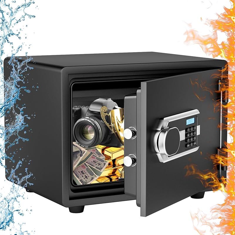 この金庫は、家庭用に最適な製品です。UL規格に準拠し、1時間の耐火性と耐水性を備えています。容量は30Lと十分な大きさで、A4サイズの書類や小物を収納できます。テンキー式の暗証番号ロックを採用しており、安全性と利便性を兼ね備えています。頑丈な金属製で、重厚感のあるデザインが特徴です。大切な書類や貴重品を守るのに最適な金庫です。設置場所を選ばず、リビングや書斎、寝室などに置くことができます。耐久性に優れた製品で、長年にわたり安心してご利用いただけます。