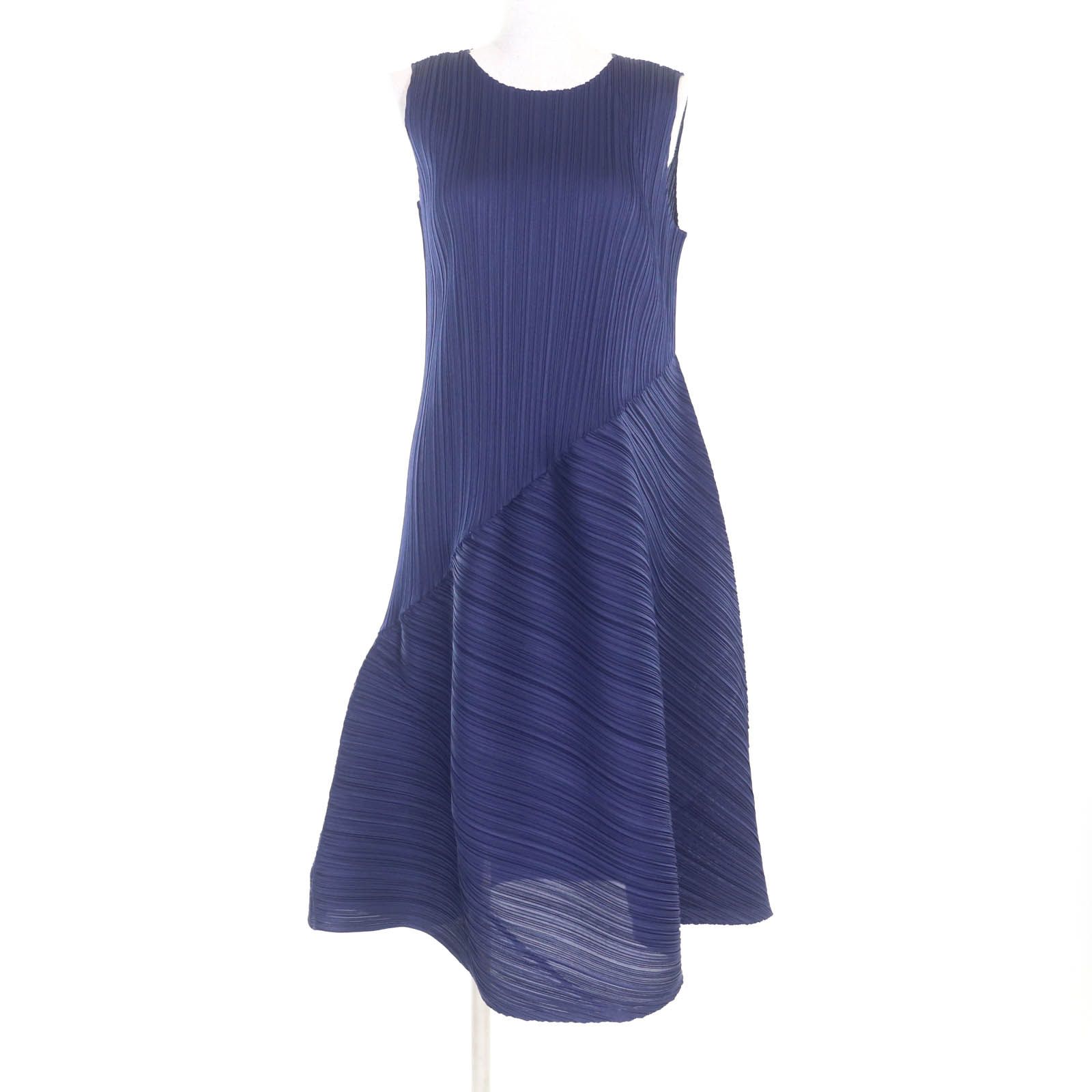 PLEATS PLEASE プリーツプリーズ イッセイミヤケ 21 AW PP 13-JH 503 裾変形 プリーツ ノースリーブ ロング ワンピース ネイビー 3 レディース