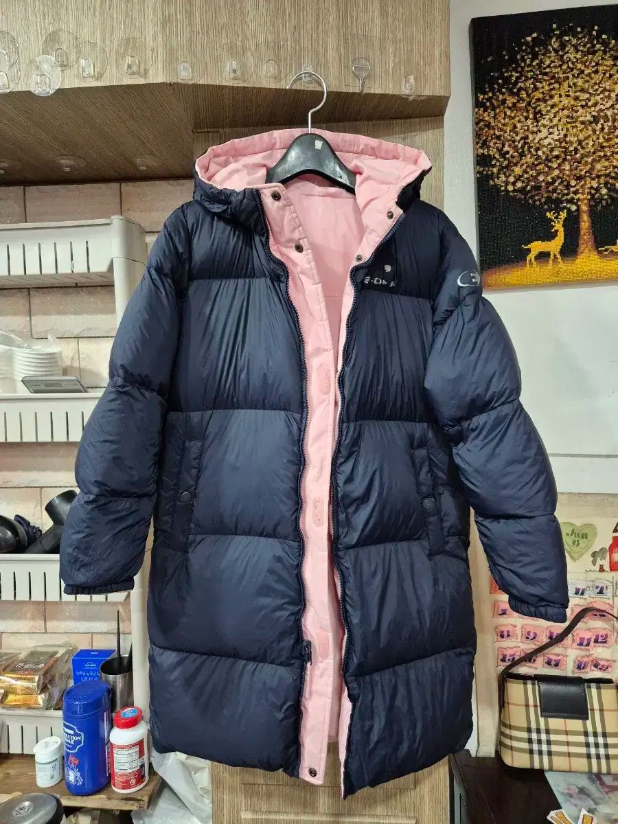 EIDER グース ダウンジャケット ロング丈 105サイズです。ピンク色 表面と黒色 裏地で なっている リバーシブル ダウンジャケットです。傷なし 状態 良いです。コメント なし いただければ 馬狼 照英 安全決済 いただければ 結構です!ほぼ新古品です