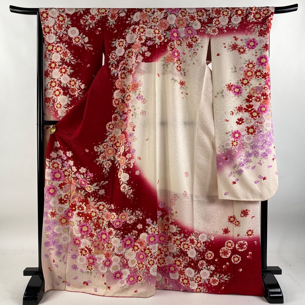 振袖 身丈171 cm 裄丈67.5 L 袷 手鞠 桜 銀通し 金彩 赤 正絹