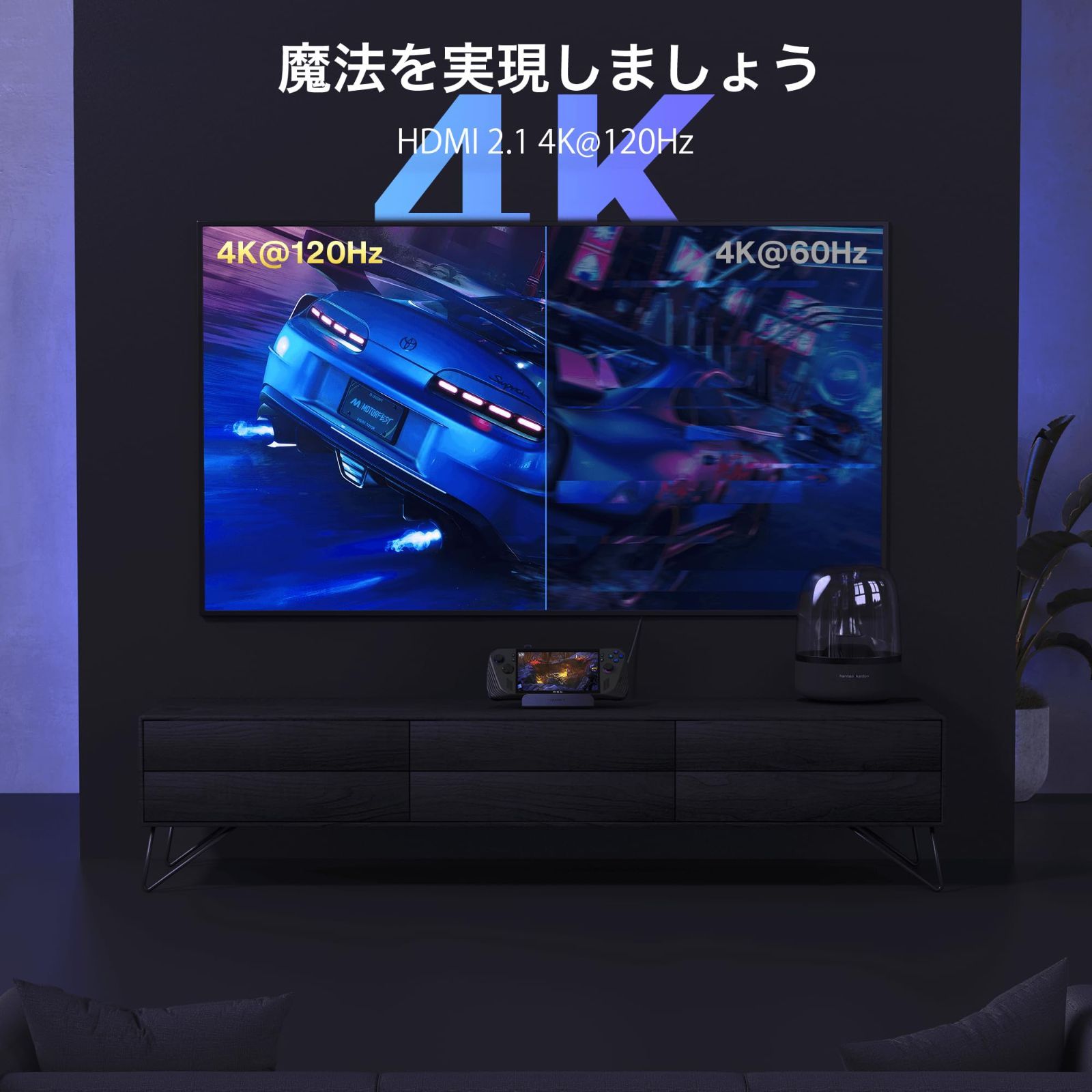 【4K@120Hz拡張ディスプレイ】Steam Deck OLED Dockには、外部の4Kモニターに接続した際に滑らかでクリアな画像を提供する4K@120Hz HDMI 2.0出力が備わっています