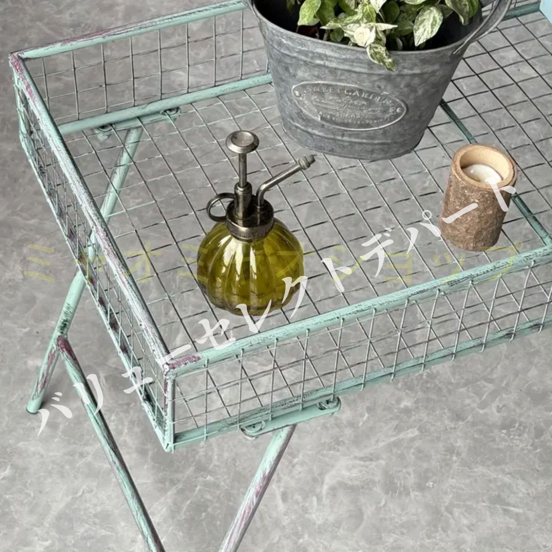 重厚感のあるメタル構造とプラントスタンド仕様が調和し、観葉植物や雑貨のディスプレイに最適です。