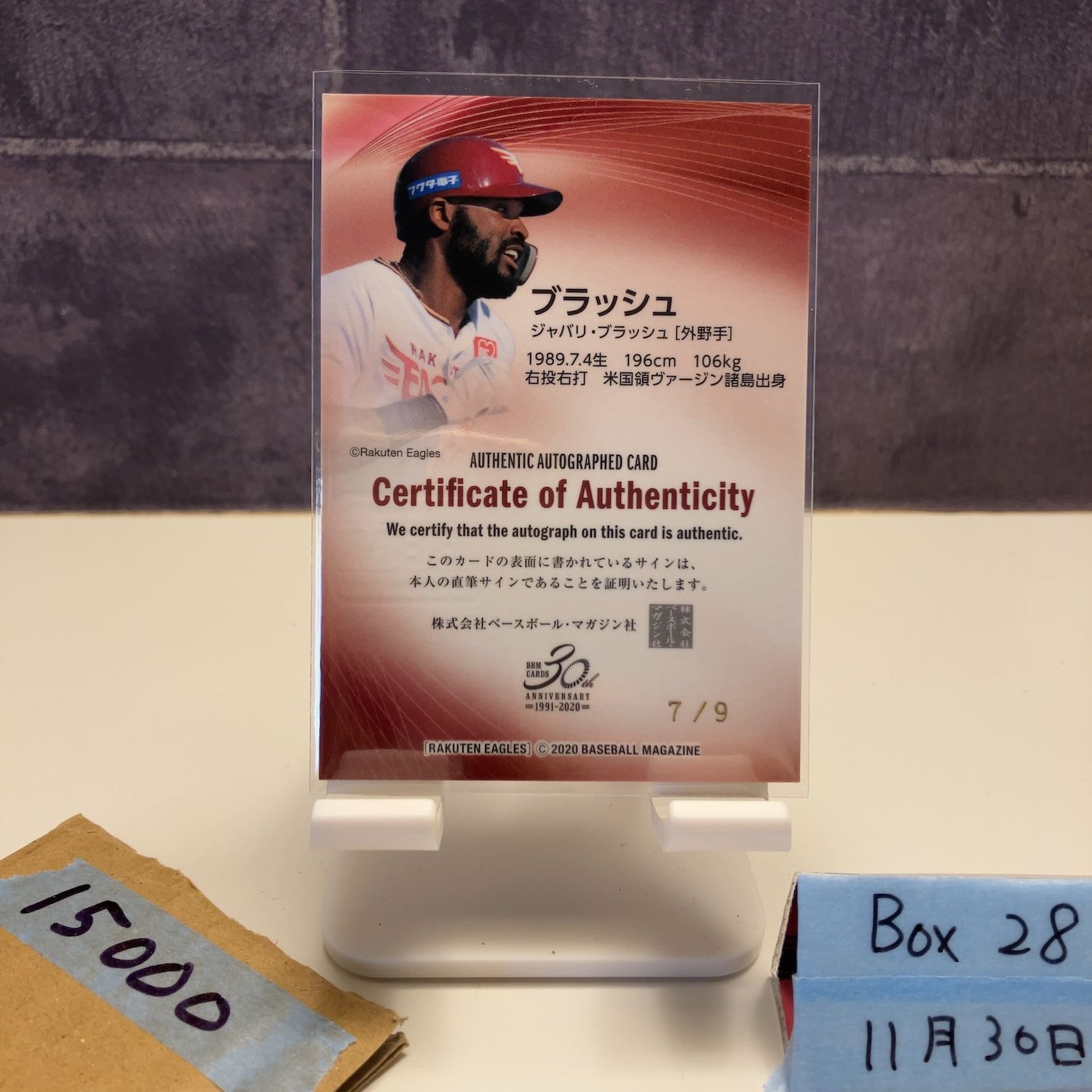 2020 BBM ジャバリブラッシュ Jabari Blash 7 9 直筆サインカード 東北 ゴールデンイーグルス カード