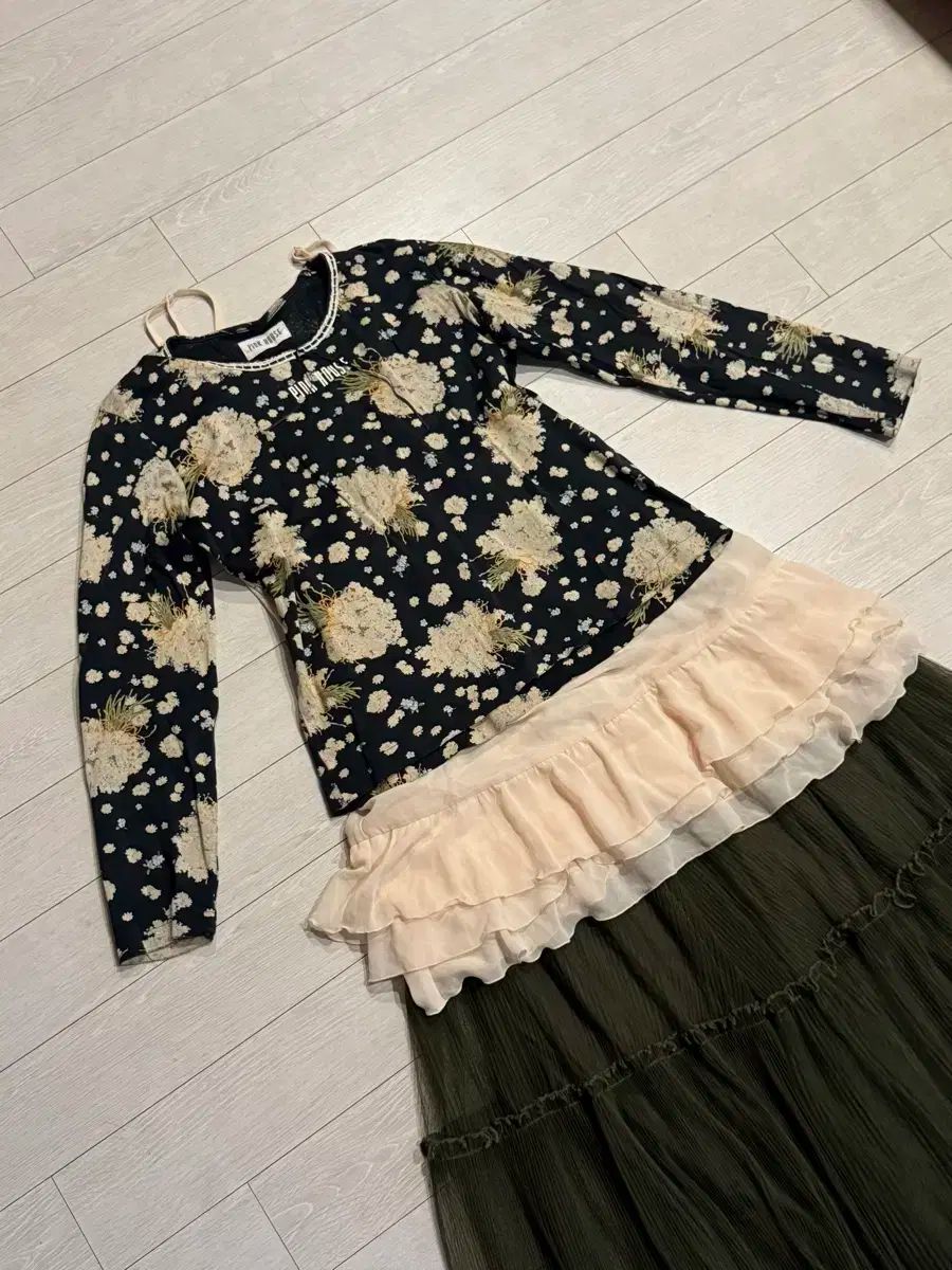 ピンクハウス 長袖 + レイヤード フリルスリップ(ショルダーストラップ調節o) + レースカーキススカート >> 全3pcs