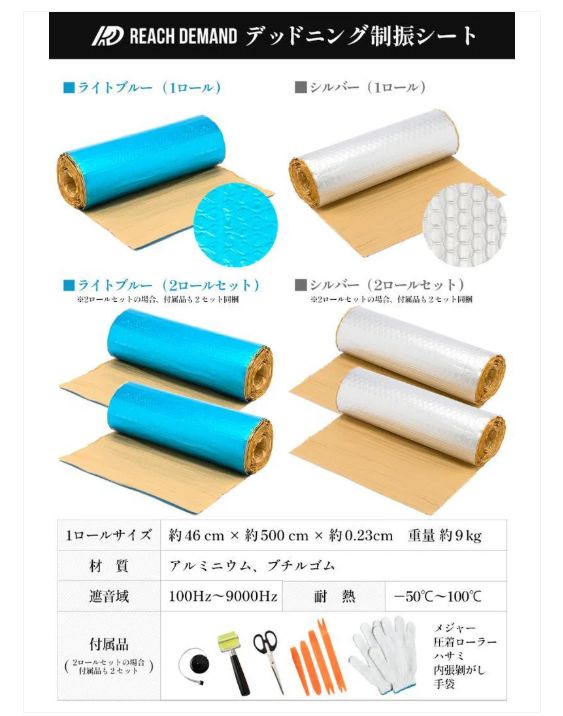 デッドニング制振シート 国際認証品 施工キット付属 5m×2ロール ライトブルー デッドニングシートライトブルー