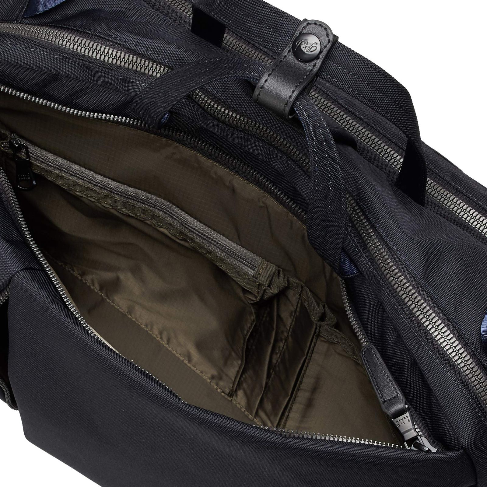 金具を使わないことにより軽量化を実現した、コーデュラのビジネスリュック。 前面ポケット内装はオーガナイザー機能を持たせ携帯電話やペン、 手帳などをまとめて収納。正面ファスナーのオリジナルキーリングストラップは 取り外して使うこともできます。 背面ルーム内装はPウレタンを入れた移動用PCポケットを装備。メッシュ仕様の 縦持ちハンドル、持ちやすく立体的かつ側面のマジックテープで 折り畳める横持ちハンドル。 背面のファスナーを2箇所開けるとキャリーオン仕様に。 リュックショルダーはファスナーポケット内に収納できるだけでなく、 ベルト・ハーネスベルトで服装に合わせて調整可能。 肩掛け用のショルダーベルトも金具を使わず、側面の輪っかにストラップを通す 特殊なデザイン。軽くて機能満載のビジネス向けリュックです。