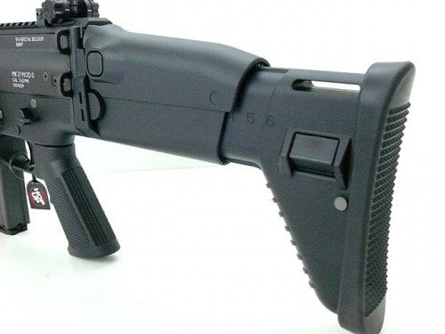 SCAR-Lの設計を活かしたディテールの再現、そしてアルミから削りだしたレシーバーやアルマイト処理を施したバレルなど、オリジナルの質感の再現にもこだわった、ホンモノと見紛うほどのリアリティを追求したモデル。カラーはブラックとFDE(フラットダークアース)と呼ばれるタンカラーの2種類がある。こちらはバレルを16インチと13インチに簡単に交換することが可能!!