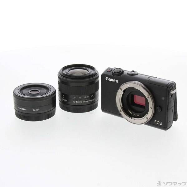 〔 品〕 ミラーレス一眼カメラ EOS M 100ブラック ダブル レンズキット 262