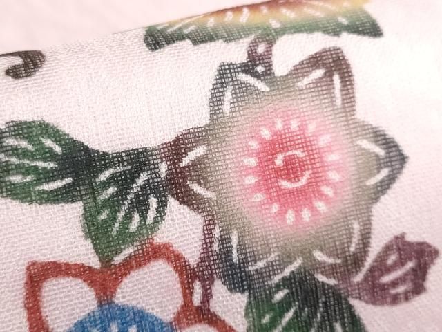 平和屋着物 上 夏物 本場琉球紅型 安里和雄 半幅帯 枝花文 証紙付き kh 5