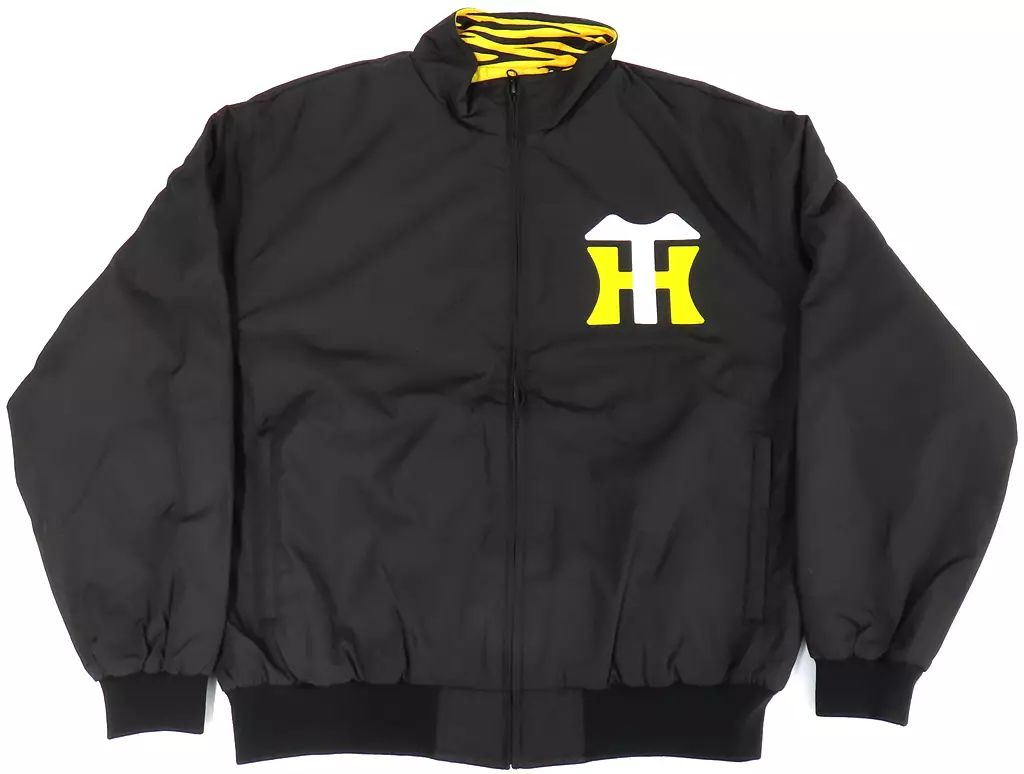 左胸部分に「阪神タイガースのTHロゴ」、バックに「XLARGEと阪神タイガースのコラボレーションロゴ」の刺繍が入ったグランドコートです。