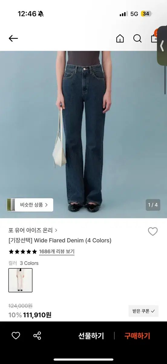 フォーユーアイズオンリー ワイド フ デニム ミッドブルー 38