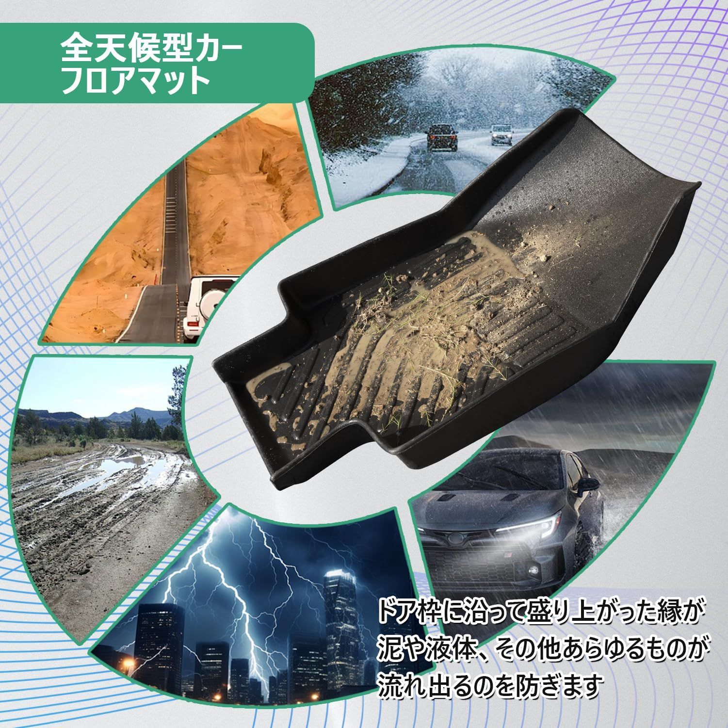 【洗浄が簡単】:3D立体構造のお掛けで車が運転している途中でも、飲み物などが溢れっても水やジュースなどはフロアマットの外への侵入を防止します。汚れたところは濡れたタオルや水で簡単に洗い流せます。