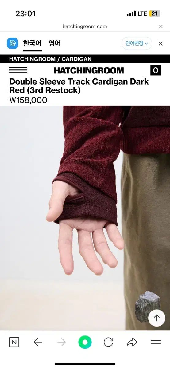 3 ハッチングルーム ダブルスリーブ カーディガン ダークレッド