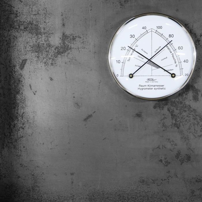 ドイツ・Fischer-barometer社によるコンフォートメーター。温度と湿度の針がクロスしている箇所を見ることで部屋の快適さを知ることができます