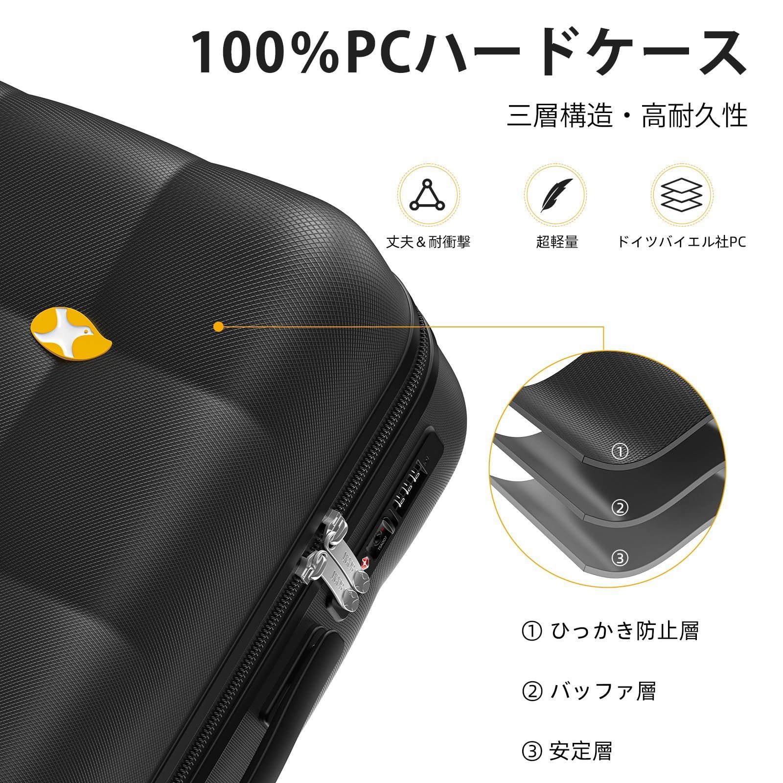 【新登場・ドイツ名社BAYER PCを100%使用】ボディ素材はPC+ABSから値段より高いピュアPCにアップグレードしました。100%ボディを備えたスーツケースです。PC(ポリカーボネート)は耐衝撃性、耐摩耗性、防水性、耐熱性、抗菌性に優れるエコ素材です。ABSを捨て去って、耐衝撃性が倍加の同時に、軽さも驚くほどになりました。スーツケースの場合、PC>PC+ABS>ABSです。外見にはPC+ABS素材のスーツケースとよく似ていますが、品質は違います!また、蜂の巣状のスクラッチ防止パターンを採用しているため、本来立体的なデザインに立体感を持たせるとともに、ボディーのスクラッチ防止特性を向上させています。美観と実用性を併せ持ち、バッグの耐摩耗性がより向上され、もっと頑丈になります。
