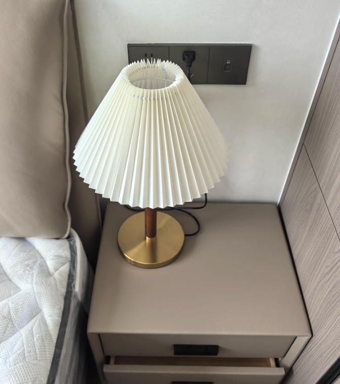 この「モダンデスクライト」は、洗練されたデザインと機能性を兼ね備えたインテリアアイテムです。ゴールドアクセントが施されたファブリックシェードは、お部屋にお洒落な雰囲気を加えるだけでなく、やわらかな光を放ち、リラックスした時間を提供します。ベッドサイドライトや書斎のランプとして使うのにぴったりです。シンプルでありながらも存在感があり、どんなインテリアスタイルにも調和します。