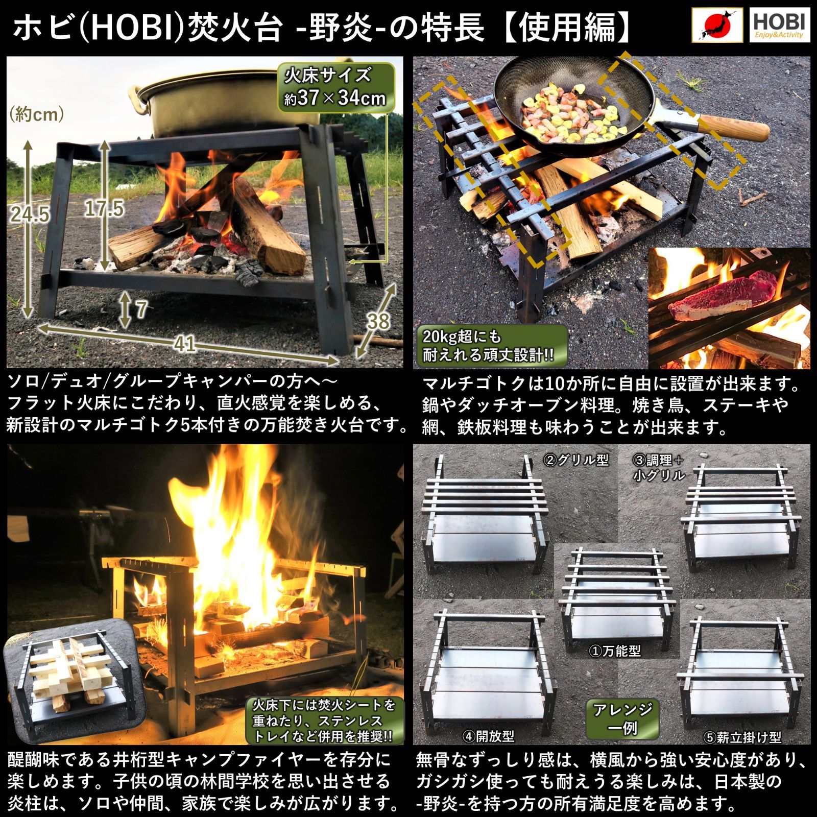 HOBI 焚火台 野炎 漆黒のブラックコート鉄 無骨でタフ 新感覚マルチゴトク 歪みにくい重厚鉄 41 38 24 5 cm ソロ グル ファミリー 焚き火台 業務用 厨房 炭火焼 焼き鳥 キャンプ ファイア コンパクト グリル バーベキュー