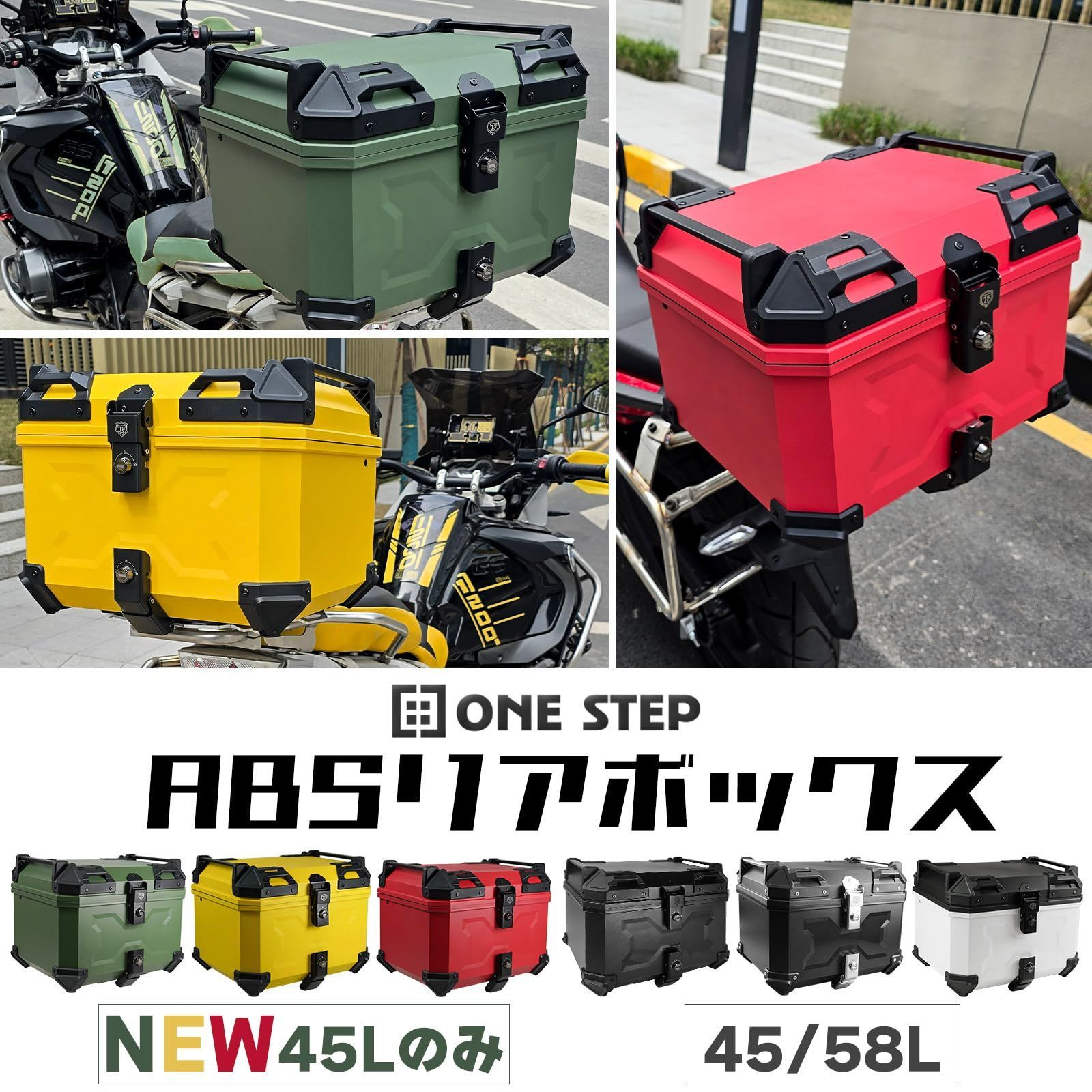 リアボックス トップケース パニアケース 大容量 取付ベース付属 フルフェイス対応 バイクボックス RED 45 L